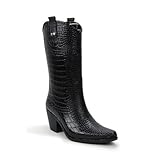 Brave the rain in bold croc-print mid-calf Cowgirl inspired boots, comfortably finished with a traction-gripping sole. Approx. Heel height: 3". Approx. Boot shaft: 10 1/2"; Calf circumference: 12" Material: Rubber.Size Run: True to size. Available in whole sizes only. If you are a half size we recommend going up to the next full size. Style Name: Tia-04.(SKU:TIA-04-BLACK)