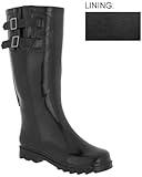 √√√Capelli New York Double Buckle & Contrasting Zipper Ladies Tall Sporty Body Rubber Rain Boot Features