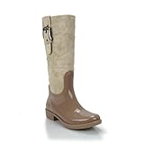 √√√Rider Inspired Buckle Strap Rain Boot Nude Features |